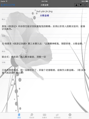 -收藏夹.可以把自己喜欢的成语放进收藏夹,方便随时查阅.