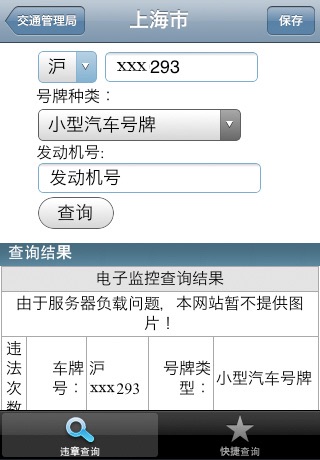 - 自定义用户界面,充分利用iPhone/iPad的功能方便车辆违章查询功能