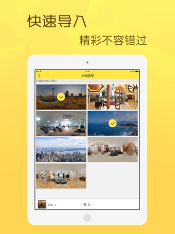得图转转鸟是一款专业的全景拍摄工具,使用它可以轻松的拍摄720°交互式全景照片,全方位呈现真实场景,并可以提供多种角度的观看模式,让您的全景照片与众不同。您也可以通过转转鸟欣赏世界各地的景观,也可以通过社交网络与朋友们分享您眼中的全景作品。同时得图也提供专业的图片云端存储功能,将您的图片保存于云端,通过电脑、手机方便管理您的珍贵图片。