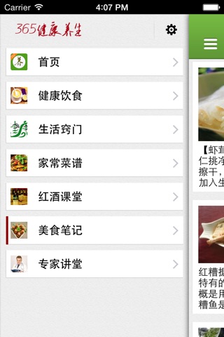 365健康养生主打绿色健康养生之道,集健康饮食、家常菜谱、红酒课堂、美食评说、专家讲堂等七大栏目于一体,每天实时为您更新健康养生美食知识,成为您生活中必备的生活小帮手!