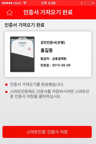 - 인증서 가져오기는 이통통신망(3G)과 WiFi를 통해 제공되며, 이동통신망을 이용할 경우, 가입하신 요금제에 따라 데이터 이용요금이 부과될 수 있습니다.