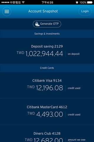 The use of this Citi Mobile® App is for the customers of Citibank Taiwan Limited only. Content provided via this Citi Mobile® App is not specifically created for any territory other than where Citibank Taiwan Limited operates/is licensed to operate.