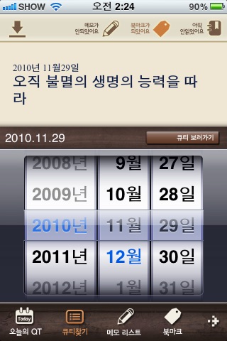 2. 메모기능 : 큐티를 하고 적용을 글로 남길 수 있어요.