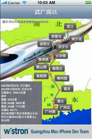 此程序包含了武广高铁各个站点间的车次,票价,公里,时刻显示;还包括所有车次的查询,站点的地图显示。