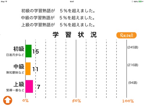 初級と,中級/上級に分けて、学習状況をグラフ化しました。