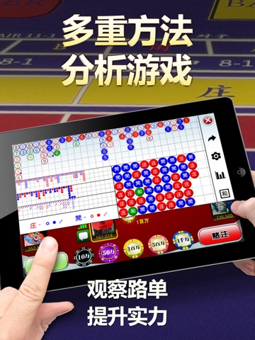 提供一些建议: 有时候会突然锁住了,也不能离开游戏,必须重新启动手机。路单还可以多给一些选择,比如,加上几个选择,路单一直固定在屏幕上或者不固定或者一定时间消失,这样玩家可以有选择一直能看到路单,如果,屏幕太大不够用,可以把屏幕上其他的东西缩小,因为,路单一直固定在屏幕上是多数玩家的喜爱,也是非常重要的。还有,能不能给路单中的数字多些信息,比如,如果不是自然数,就用实心红色或者黑色,原来玩家赢了是红色,可以用金黄色或者其他颜色代替红色。 还有最好有游戏记录, 可以参考天天德州扑克游戏中的游戏记录。