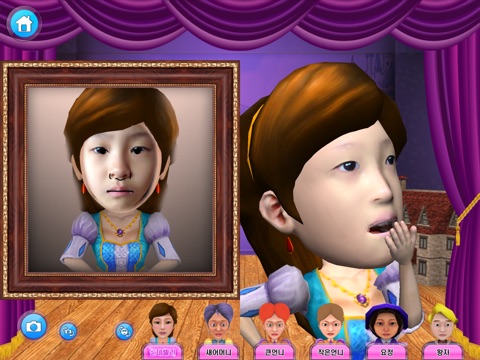얼굴 사진 촬영을 이용하여 동화에 등장하는 모든 등장인물의 자신이나 주변 사람, 특히 아이의 얼굴로 적용하여 동화 이야기를 체험할 수 있습니다.
