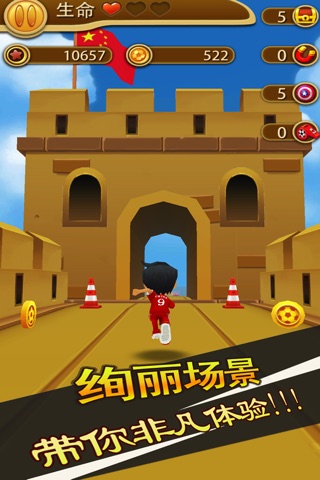 *精致而多样的3D场景,奔跑中能看到多种不同的场景,包括足球场、森林、山洞、长城,各种场景的切换缓解玩家的疲劳。