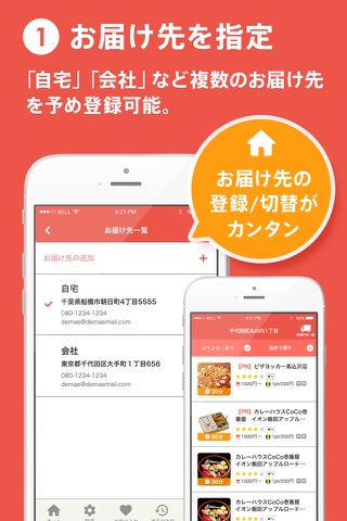 また、GPSを使った現在地検索も可能で、自宅、職場、パーティ会場、公園まであらゆる場所で簡単にデリバリーの注文ができます。