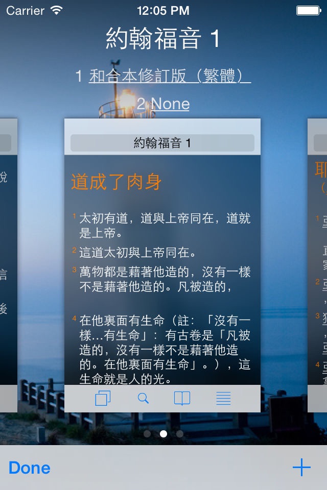 Touch Bibles is specifically designed for all Chinese iPhone users in the world with the complete support of tradition Chinese and simplified Chinese bibles. It is also the first bible app having the Dual-Bible view - different versions of bibles can show on a single page. The list of features are as follow: