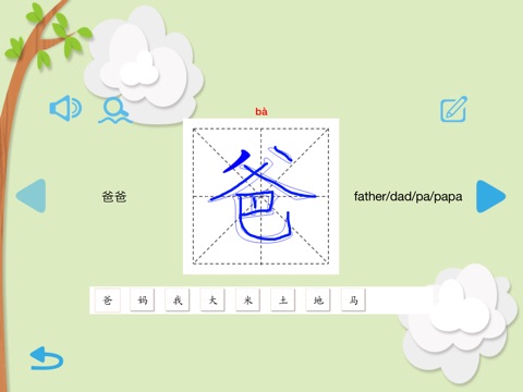 2、在学习界面提供汉字的标准发音、组词、英文释义、我来书写等5项功能; 等