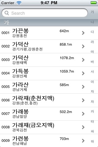 ★산 이름(관악산), 도시명(서울, 익산), 높이(650)로 검색이 되며, 현재의 높이, 경위도 좌표, 궤적 저장 및 궤적 추적 등 현 위치를 실시간으로 볼 수 있는 등산용 GPS로 스마트 폰 등산 장비입니다.
