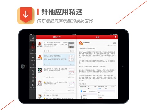 由鲜柚社区出品,在这里你可以与数十万果粉交流心得体会,记录下科技生活的点点滴滴,关于苹果的各种话题,总有你感兴趣的。