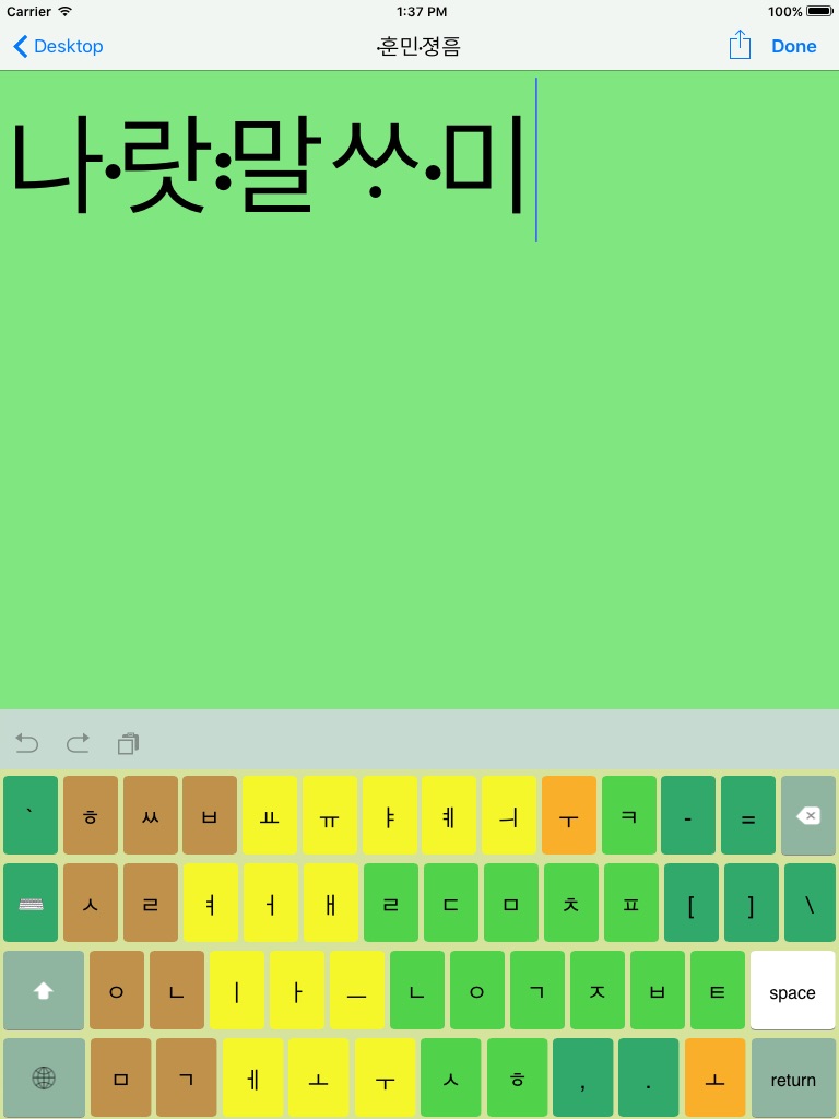 * 앱 내에서 블루투스 키보드로 세벌식 입력이 가능합니다