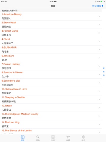 本应用包括《风雨哈佛路》,《肖申克的救赎》2部完整电影及21部经典电影的经典对白片段。