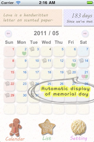 As well as that, it records automatically the day of meeting your sweetheart,