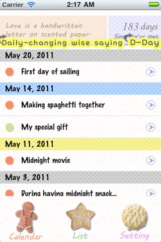 - Automatic counting which indicates how many days have passed since met (become