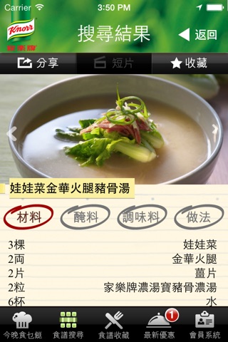 【食譜收藏】: 將家人喜愛食的食譜加入收藏