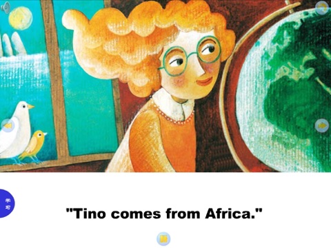 5.【看图认词】:对照图片,中、英对照,学习单词,可暂停、上个、下个。