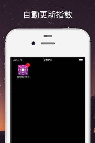 紫外線大作戰提供最即時的紫外線資訊給您參考,直接將紫外線指數即時更新到您的iPhone、iPod Touch,並呈現在icon上方的數字中,且完全免費,讓您不用打開程式即可在桌面上快速掌握紫外線指數資訊,是愛美的您今夏必備的美白工具之一!