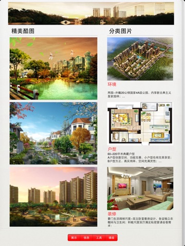 这是一款面向房产等行业制作的销售图册软件。提供了图片的自动演示、手工浏览、分类展示等图册演示功能,为了能更好的方便销售经理的工作,还提供了 客户信息登记、贷款计算器、税费计算器和通用计算器等相关的功能。通过丰富、炫动的图片展示,流畅的 iPad 操作过程,定能提升企业形像、给客户留下深刻的映像!