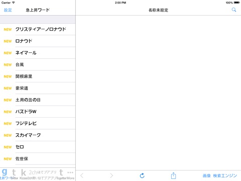 複数の検索エンジンを切り替えることができるので、様々な視点から『キーワード』を読み解くことができます。『キーワード』の更新は簡単テーブルビューを下に引っ張るだけです。