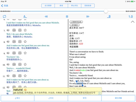 3.英语句子即点即读,听写过程中自动定位到该句并高亮显示该句。