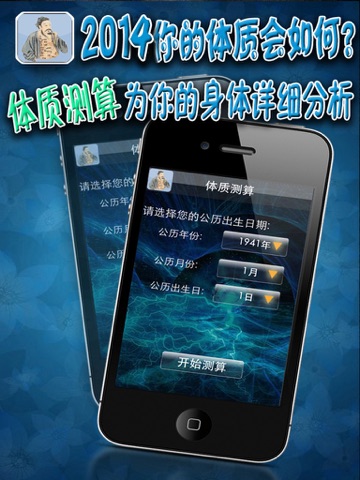 According to " Book of Changes" images of people born birthdates decided her innate constitution , and to determine a persons innate constitution , this persons life is easy to get the disease , " physical fitness test " is based on the " Book of Changes" content, combined analysis of modern technology , and extensive clinical practice , all sorts of results obtained by a number of domestic and personal guidance to learn in laboratory medicine guru , the test results came out with a certain accuracy.