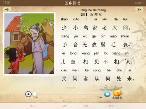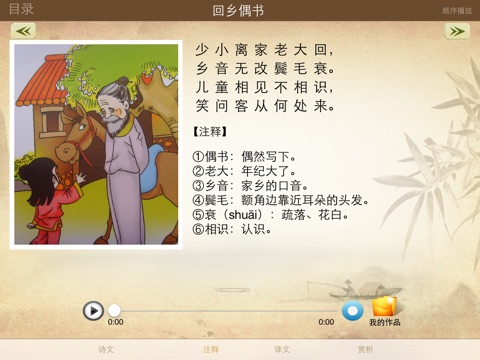 《古诗诵读(沪教版)》集范读、释读、赏析、默写、录音、回放等功能于一身。释读可以深化对古诗意义的理解,是对古诗朗诵要点的指导;范读便于学生模仿和学习;回放便于学生播放录音文件。优秀教师浑厚古朴的发音便于学生融入古诗意境,体会古诗古韵。软件应用界面色彩清新明快,提升了诵读体验,宜学宜用。