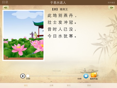 《古诗诵读(沪教版)》集范读、释读、赏析、默写、录音、回放、作者等板块于一身。释读可以深化对古诗意义的理解,是对古诗朗诵要点的指导;范读便于学生模仿和学习;回放便于学生播放录音文件。优秀教师浑厚古朴的发音便于学生融入古诗意境,体会古诗古韵。软件应用界面色彩清新明快,提升了诵读体验,宜学宜用。