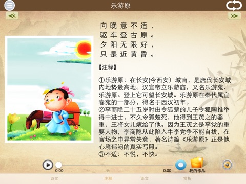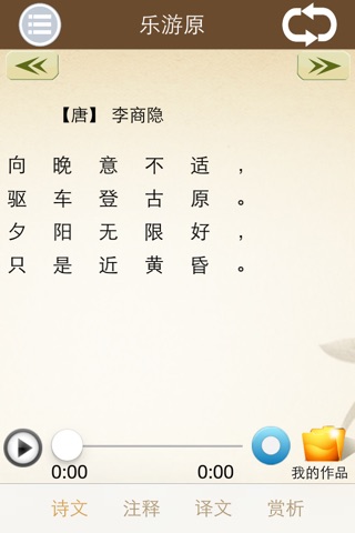 《古诗诵读(沪教版)》集范读、释读、赏析、默写、录音、回放等功能于一身。释读可以深化对古诗意义的理解,是对古诗朗诵要点的指导;范读便于学生模仿和学习;回放便于学生播放录音文件。优秀教师浑厚古朴的发音便于学生融入古诗意境,体会古诗古韵。软件应用界面色彩清新明快,提升了诵读体验,宜学宜用。