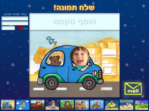 בנוסף, באמצעות האפליקציה תוכלו לשלוח גלויות מקוריות בהן משולבת תמונת ילדכם!