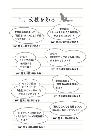 最大限のパフォーマンを発揮する為の「SEXの準備体操」や女性をいつもより2倍感じさせる「3分マッサージ」など今日から使えるSEX術を写真とイラストで分かりやすくご紹介!