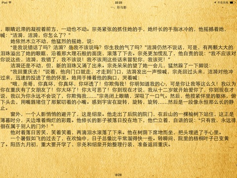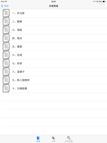 系统支持背景、字体大小、字体颜色设置,支持自动打开上一次阅读画面。