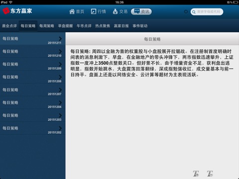 提供东方证券研究团队动态晨会点评、每日策略、每周策略、每月策略、午市点评、研报摘要等投资咨询参考信息以及东方证券精选的交易提示、证券要闻、机构晨报、机构策略、机构点评、个股评级、个股异动、市场传闻、直接融资、业绩通道、宏观资讯、行业资讯、公司资讯、新股资讯、基金资讯、港股资讯等。