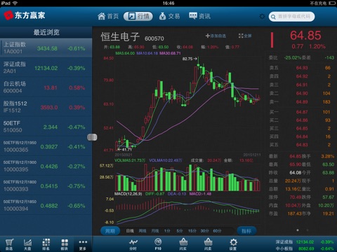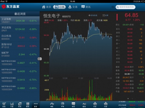 提供及时清晰的实时行情,强大的图表分析功能(走势图、日/周/月等K线图)及自选股个性化管理功能,可以24小时提供深沪两市A、B股、权证及基金、债券各类证券品种实时行情、个股基本财务指标、公告信息等查询。