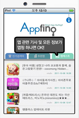 - 앱캐스트 : 추천 앱 리뷰, 모바일 뉴스 등의 생생정보 전달