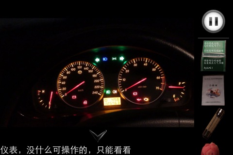全部图片均为车内实景拍摄, 游戏过程中你要挖遍车内各个角落, 找到道具后还要对车内的面板做一些指定的操作. 过程惊险刺激又有趣, 还能让你更加熟悉汽车操作, 提醒你许多车内被你遗忘的角落.