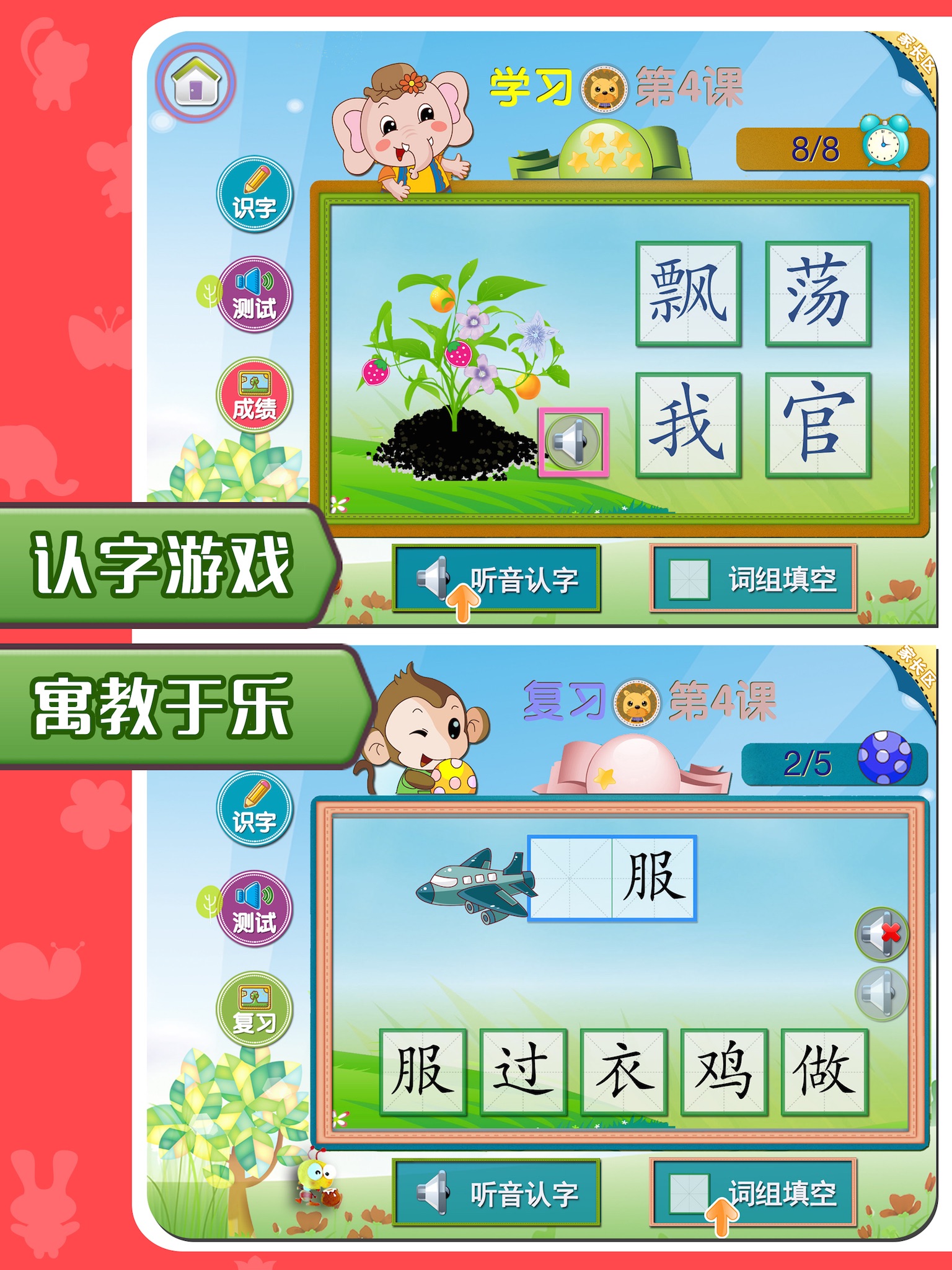 2、认字游戏,寓教于乐: