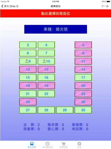 2. 線上查看座位表,並可直接劃位