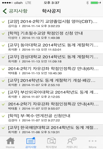 2. 공지사항 : 학사공지, 일반공지, 행사모집