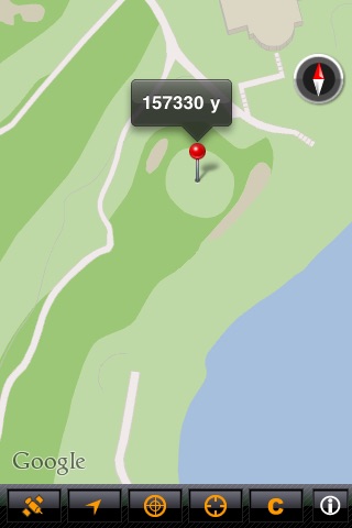 When you tap the map, the number of the yards from the present location is displayed.