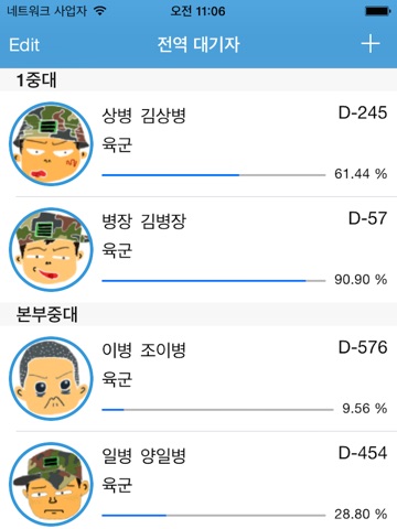 사진 첨부와 함께 여러명의 전역일을 보여 줄수 있습니다.