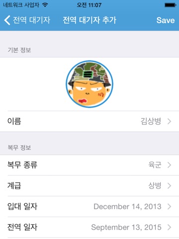 SNS 와 연동하여 페이스북 트위터로 전역일을 알릴수 있습니다.