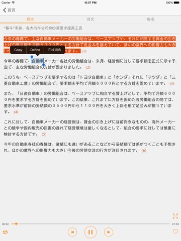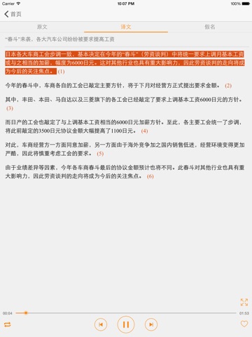 3.文章自动滚屏,当前句子高亮显示(原文与译文同步高亮显示),正在学习内容一目了然