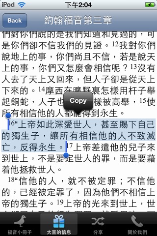 App內附有《聖經.新普及譯本.約翰福音》,從神的話語認識真道!