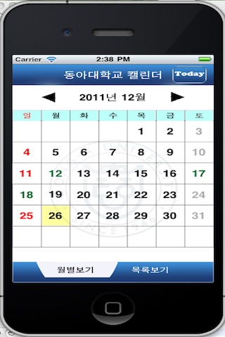 . 학사일정, 개인일정 등이 입력되면 날짜의 색깔이 변화되어