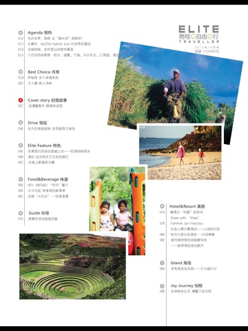 以独特性和前瞻性的视角,对特色目的地进行深度报道。包括:世界遗产,绿色旅行,魅力中国等。