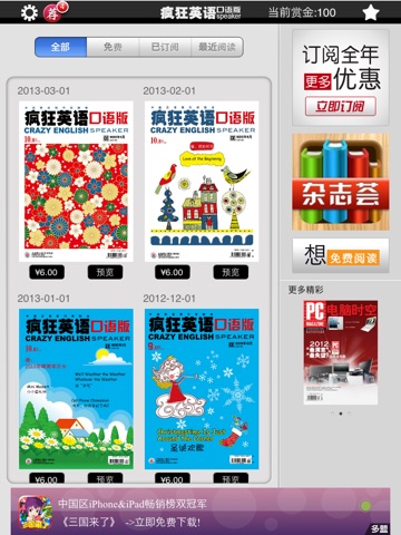 1、《疯狂英语口语版》杂志为月刊,一个月一期