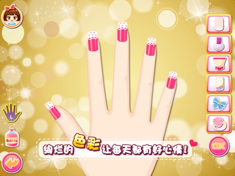 利用《美甲娃娃》提供的素材,可以实现成百上千的组合,来设计出属于你的美甲。你的优美设计还可以拍照留念,分享给自己的闺密。
